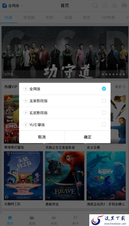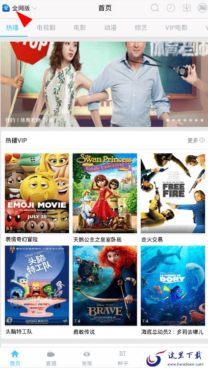 1、想要来更改乐享视频中的搜索引擎,你需要先点击首页左上方的“全网版”选项。