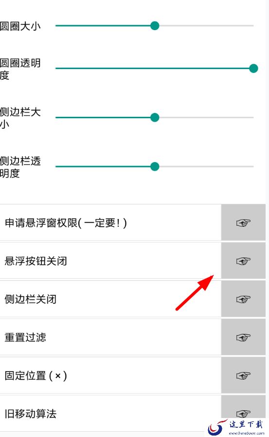 3、在此之后,通过点击设置页面的“悬浮窗按钮关闭”右侧的选项,大家就可以打开手机鼠标正常使用了。