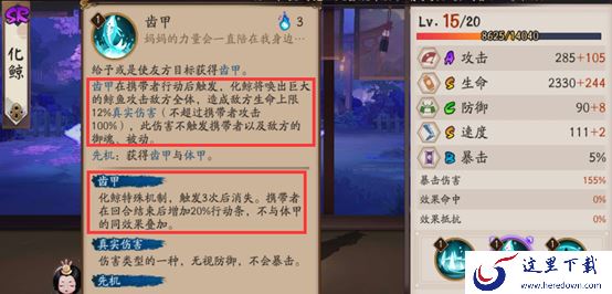 如果说化鲸有增加行动条的效果,那么加多少推多少就可以,只要一个食发鬼,不但三技能是一个群体伤害,最重要的就是他能够击退30%行动条的功能。这个要食发鬼觉醒才行。而化鲸总共才能增加20%行动条。食发鬼一推,化鲸队就失去了先手的机会。
