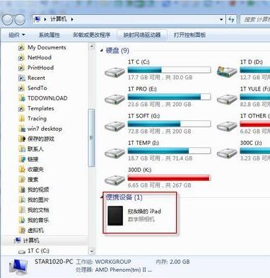 iTunes同步iPhone或iPad里的照片同步(传送)到电脑的方法很简单,无需通过iTunes。只要在连接电脑与iPhone或iPad后(Windows 7为例),iTunes就会在Windows 7中自动安装驱动程序,然后在计算机列表中就会显示便捷设备,接着就像操作U盘以样传送照片到电脑中。