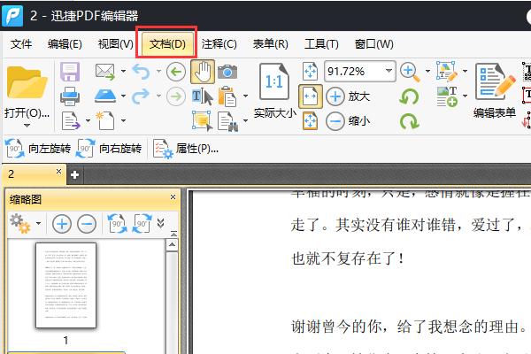 先打开我们电脑上的迅捷PDF编辑器,将我们需要的PDF文件添加到该工具中。在该功能栏处点击【文档】。