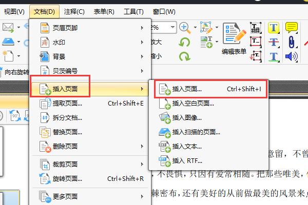 在【文档】的【插入页面】功能中,我们需要选择第一个功能【插入页面】,或者是使用快捷键【Ctrl+Shift+I】。