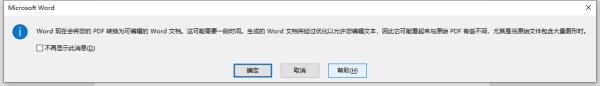打开会弹出一个【word将您的PDF文件转换为可编辑的word文档可能需要一段时间】的对话框,点击【确定】。再以同样的方式将其他的PDF文件给打开。