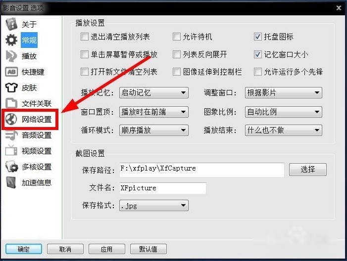 2、默认会来到常规模块设置页面,这里其实是更改截图路径,所以我们选择下面的【网络设置】进入。
