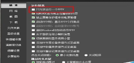 2) 去掉“只允许运行一个PPTV”前面的勾选;