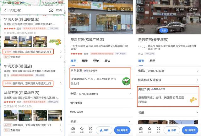 当用户搜索华润万家、沃尔玛、益丰药房等大型超市或药店时,应用程序的条目将显示在下拉页面或位置详细信息页面中,点击进入应用程序购买商品。下单后,货物将从京东家居、美团外卖等地发货,非常方便快捷。据悉,目前网络地图上有7万多家超市和药店可以由京东家园、美团外卖等合作伙伴送货。同时,网络地图还拥有更专业的“医疗卫生中心”小程序,为用户提供疫情期间在线下单、线下配送的暖心服务。首批已与上海240家药店联网,更多企业正迅速分批进入。