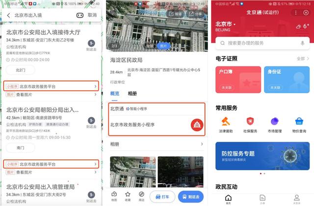 网络地图在关注市民购物、旅游等关键需求的同时,还整合了生活服务的方方面面,帮助市民实现不出门、零跑、降低病毒感染风险的真正工作。比如,为方便政务,网络地图推出了北京通、福建正通、安徽警方便民服务电子网通等官方政务服务平台,以及9家三甲医院的官方小程序。当用户搜索服务位置和医院位置时,会出现小程序的条目。在国内方便完成证书办理、信息查询等一系列事务。