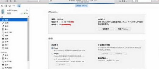 打开itunes,手机连接电脑,连接成功就会在itunes中显示手机信息