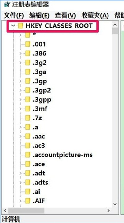 在打开的注册表编辑器窗口,我们展开HKEY_CLASSES_ROOT;