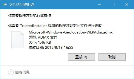 1、进入C:WindowsPolicyDefinitions,找到Microsoft-Windows-Geolocation-WLPAdm.admx文件并删除