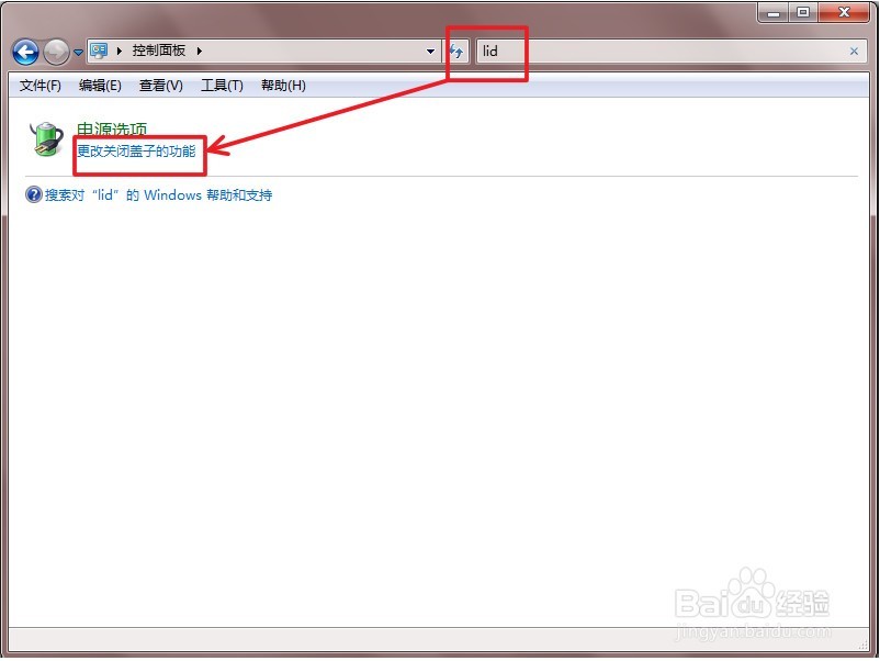 打开控制面板,在右上角方框内输入lid,出现如下截图
