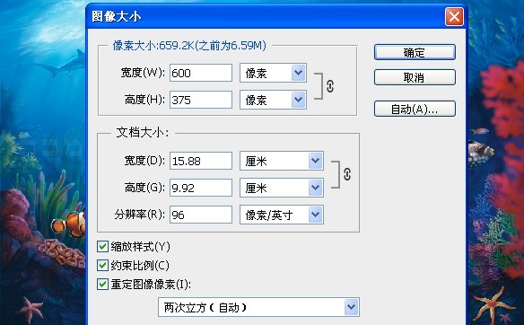 第四步:此时我们所做的所有的动作都会被记录下来,打开→图像→图像大小(CTRL+ALT+I)→输入所需要的图片大小参数→确定如下图所示