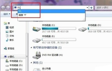 5、魔方电脑大师的这个设置很简单,而且很关键的一点,就是如果你自己想访问被隐藏的硬盘分区时,直接在我的电脑地址栏中输入硬盘分区的盘符号加冒号,就可以访问了。如下图所示,直接输入f:就能照常打开F盘了。