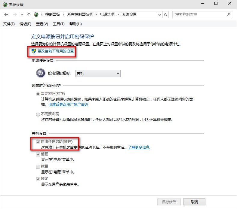 然后点击”更改当前不可用的设置“,红色箭头指的地方