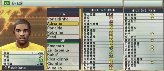 96年罗纳尔多横空出世,登陆欧洲足坛,在巴萨和国际米兰的出色表现让他连续两年拿下世界足球先生的称号。那一年罗纳尔多刚刚21岁,而在《实况足球3世界杯》中,罗纳尔多的设计也是实至名归的BUG,游戏中罗纳尔多有着9的速度和9的射门,是全游戏中最快的球员,使用罗纳尔多非常简单按住加速键一路向前,然后在禁区前射门即可收获进球。