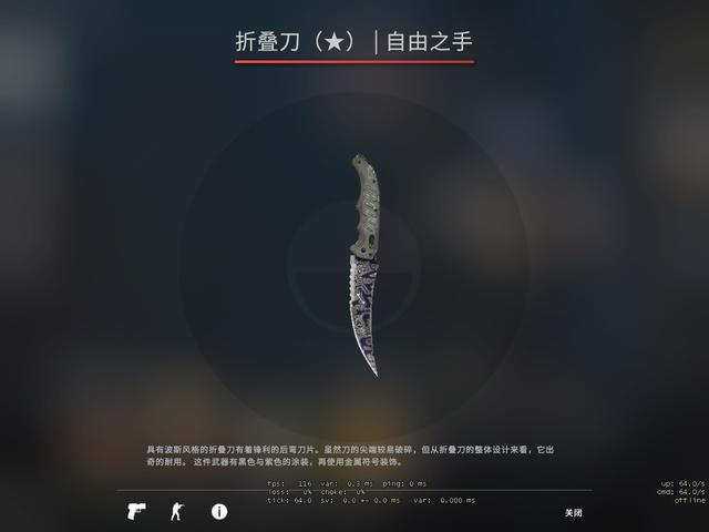 即便是崭新出厂的自由之手折叠刀,价格也仅仅为八百元,但是战痕累累的价格却达到了1300元。主要原因是自由之手折叠刀并不是十分吃磨损,即便是战痕累累图案也能很亮眼,其次战痕累累的点模板与其他磨损的有区别,造成了游戏中独一无二的检视体验。最重要的一个原因是市场中只有一款,所以其定价为1200元,不过想要不亏本出手极其困难。