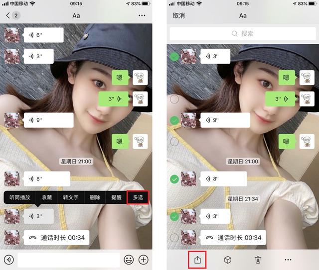 首先打开好友聊天对话框,长按其中一条语音消息,然后点击【多选】;接着在聊天记录中勾选多条语音消息,然后点击分享按钮。