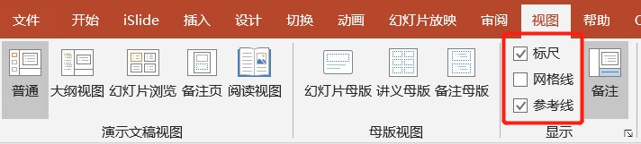 显示工具是很常用的ppt组件,可以用来迅速对齐内容、修改版式等,非常实用。显示工具包括标尺、网络线和参考线三种,可以通过视图——显示——标尺\网络线\参考线,选择打开或关闭。