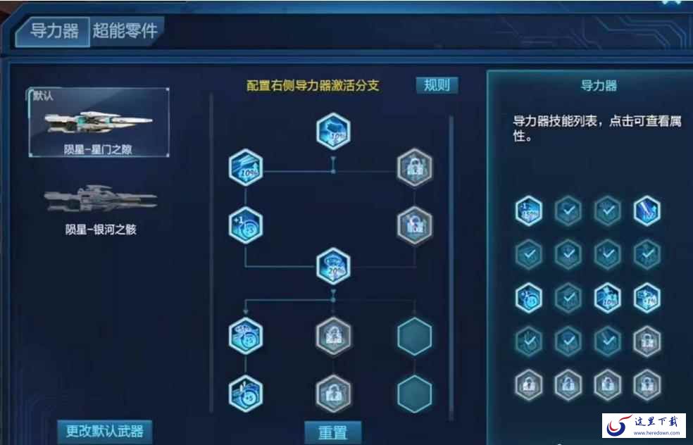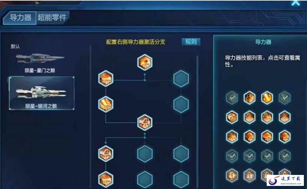 2.银河之骸导力器搭配方式如下图所示。银河之骸目前只有一个分支,这套分支兼顾了技能和普攻的强化,大招太阳耀斑在这套导力器的搭配下燃烧伤害会显著提升,但是在使用左键普攻时要尽量打头,只有爆头才能享受到普攻的强化效果。