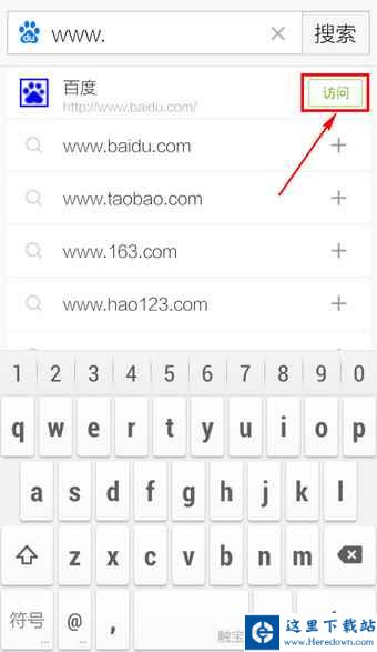 2.输入【www.】时,百度给出下拉,网址后标注【访问】的可以直接打开