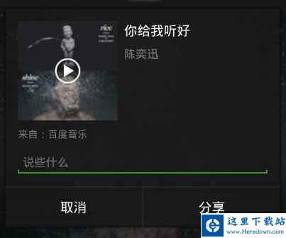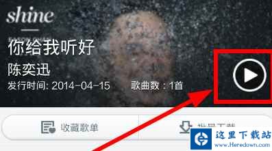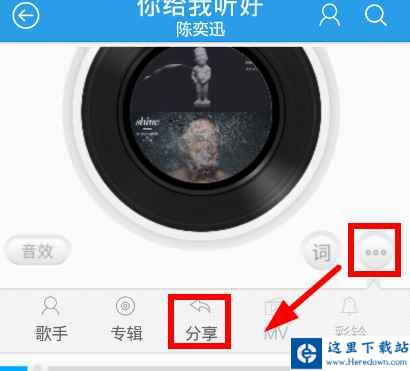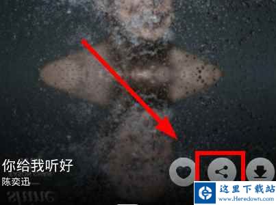 4、点击播放按钮播放音乐后,我们会找到一个分享的按钮,如下图所示: