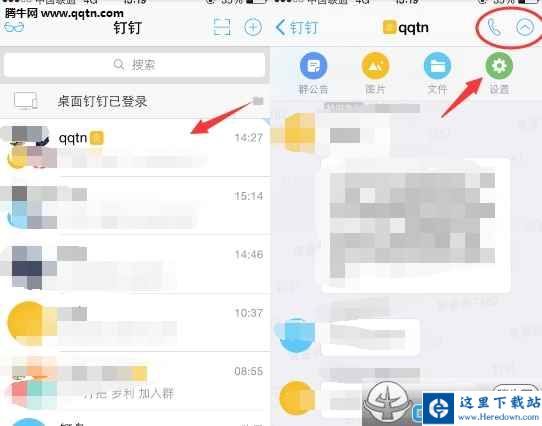 1、打开钉钉,进入你想要消息免打扰的钉钉群,在右上角找到设置选项,如图: