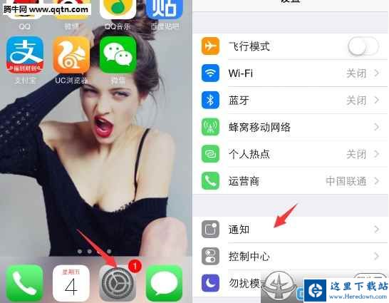 1、以下以iPhone手机为例,安卓用户也是同样方法。在手机中找到设置选项,然后打开通知中心,如图: