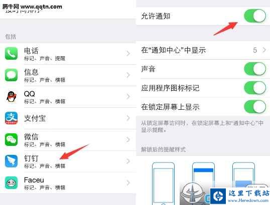 2、在通知中心找到钉钉,关闭允许通知后,你将不会接收到新消息提示,而电脑端则是可以正常使用的。