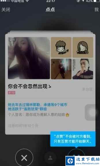 4、点赞的话是不会被对方看到的,只有互相点赞了才能聊天哦!说明你俩是互相中意的!