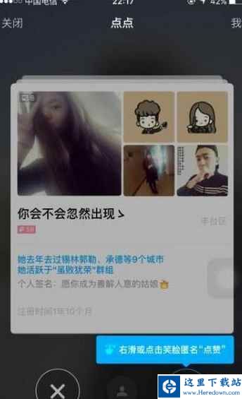3、如果你发现的喜欢的人,就右滑或者匿名点赞。