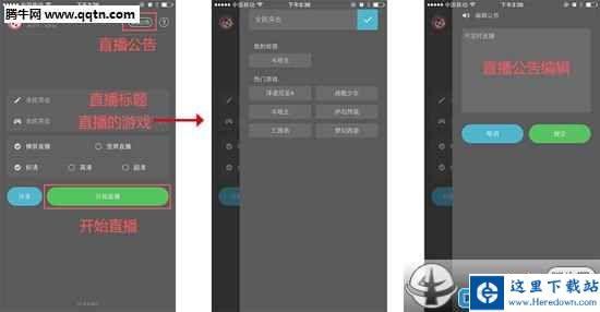(3) 填写直播信息:填写直播名称、选择直播的游戏、选择横竖屏直播(如果直播的游戏是横屏请选择横屏直播哦!)选择直播源清晰度