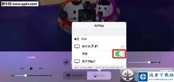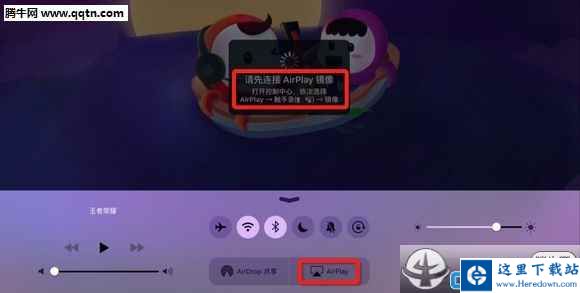 3、一定要根据提示,前往[控制中心]-打开Airplay镜像(宝宝们记得看见提示以后从屏幕底部把[控制中心]拖出来!)
