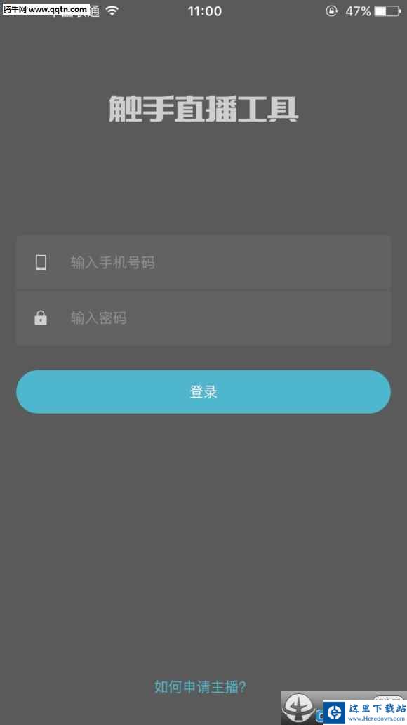 (1) 登录:打开触手录APP, 登录账号(确保已成功申请主播)
