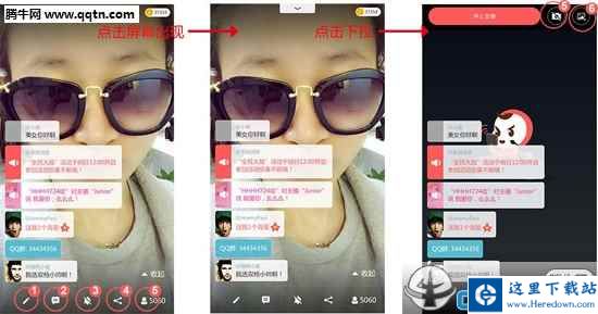(注:1-输入文字聊天;2-打开或关闭聊天窗口;3-通知;4-分享直播间;5-观看人数;6-打开或关闭摄像头;7-设置背景图)