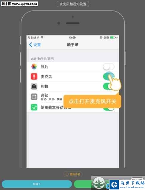 (2)确保开启手机的AssistiveTouch、触手录的麦克风、触手录的通知
