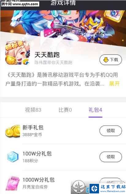 选择相应的游戏,点击进入,点击礼包,就可以看到礼包了,比如小编想要领取天天酷跑礼包,就可以进入天天酷跑中,然后看到礼包,直接点击领取按钮就ok了~!
