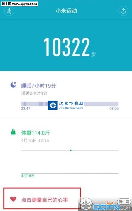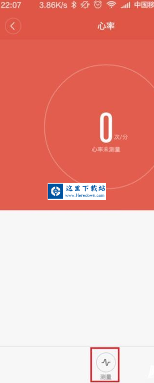 2、接下来,我们就会看到页面中显示了一个测量心率的功能,我们点击该菜单按钮即可进入小米手环心率测量的功能。