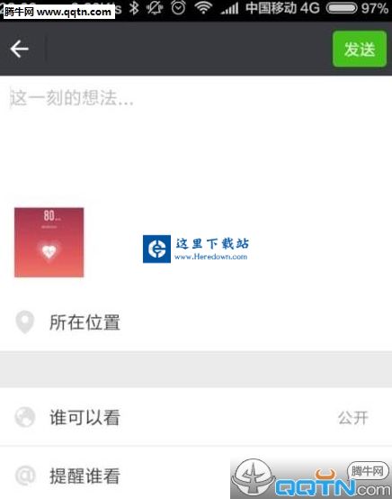 7、接下来,我们就可以看到心率分享页面,我们可以在下面的待选项中,选择了一个分享平台,这里我们可以选择分享至微信朋友圈。