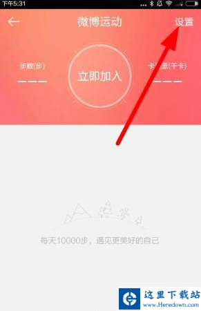 1、打开软件,在微博运动界面,首页点击右上角的设置按钮,