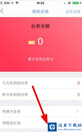 2、在我的台券界面,可以查看你的台券,可以领微信红包,可以转换为金条,