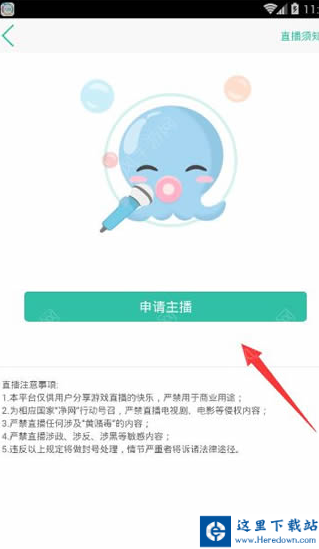 3、如果你没有主播直播权限的话是无法进行直播的,这个时候你需要点击页面中间的“申请主播”按钮进行申请;