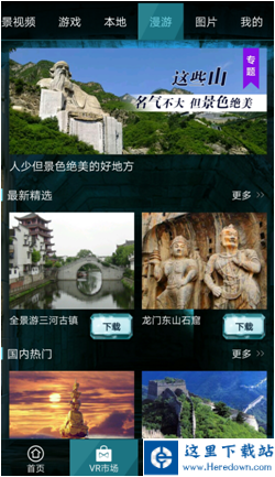全景漫游提供的是各地风景的实地游览体验,用户根据指引可游览指定风景名胜的多个景点。在评测体验中,用户通过头部摇动控制瞄准点,以控制游览景点顺序。每处景点基本都配套有语音解说,为用户介绍风景名胜的详细情况。但实质上,每个景点只是一张360°的全景静态照片。与全景视频情况基本一致,图片的质量已接近高清,但由于是静态,游览过程实质是照片之间的切换,行走感偏弱,所以漫游也就无从说起了。