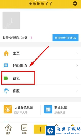 1、打开闪电租人app,在“我的”中点击“钱包”按钮;