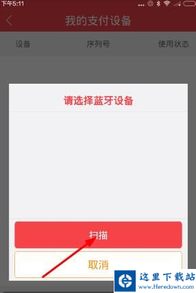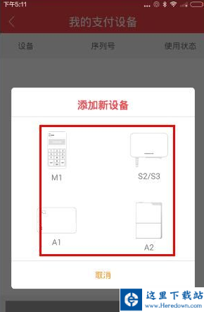 2、在我的支付设备界面,显示你的支付设备,若果还没有,点击下方的绑定设备按钮,出现新设备的的类型,选择你要添加的设备,