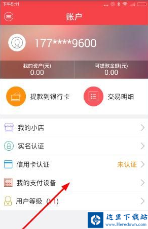 1、打开软件,在个人中心界面,点击我的支付设备按钮,