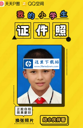 2、下载天天P图软件,打开后会看到首页最上方就有“我的小学生证件照”穿越回到童年;