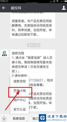 1、微信关注盛投网,关注公众号,在首页上点击下方的我要借款按钮,