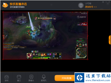 点击游戏选择按钮,弹出游戏选择框,快手直播伴侣会自动识别你已经安装并打开过的游戏。双击可以启动未打开的游戏或者将已经打开的游戏添加至直播窗口,此时将游戏放到全屏,直播伴侣便可直接读取游戏页面到已添加的窗口。