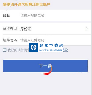 3、接着你需要开通大智慧活期宝账户,输入自己的姓名、证件号码等资料,仅需10秒就能开户成功,接着就可以提现成功了哟!