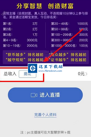 2、进入“我要直播”页面之后在左侧点击“提现”按钮;